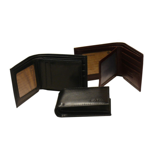 Billetera para hombre código 5 fabricada en cuero. Tarjetero triple en contratapa, visor en la otra y en volante interior tarjetero triple y visorDivisiión para billetes. Fabricado en Uruguay. Dimensiones : 11 x 8.5 cms.