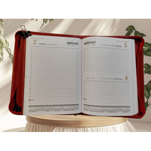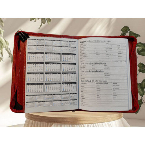 Agenda Remember Milenium 2026 día a día con cierre simil de color Rojo 457 1911 R