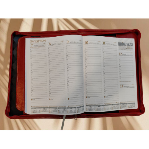 Agenda Remember 3 2026 semanal en dossier con cierre simil cuero rojo cod. 457/1411 R